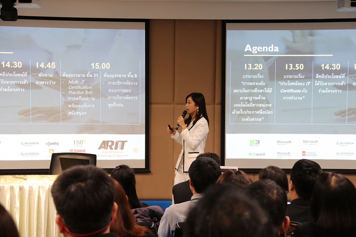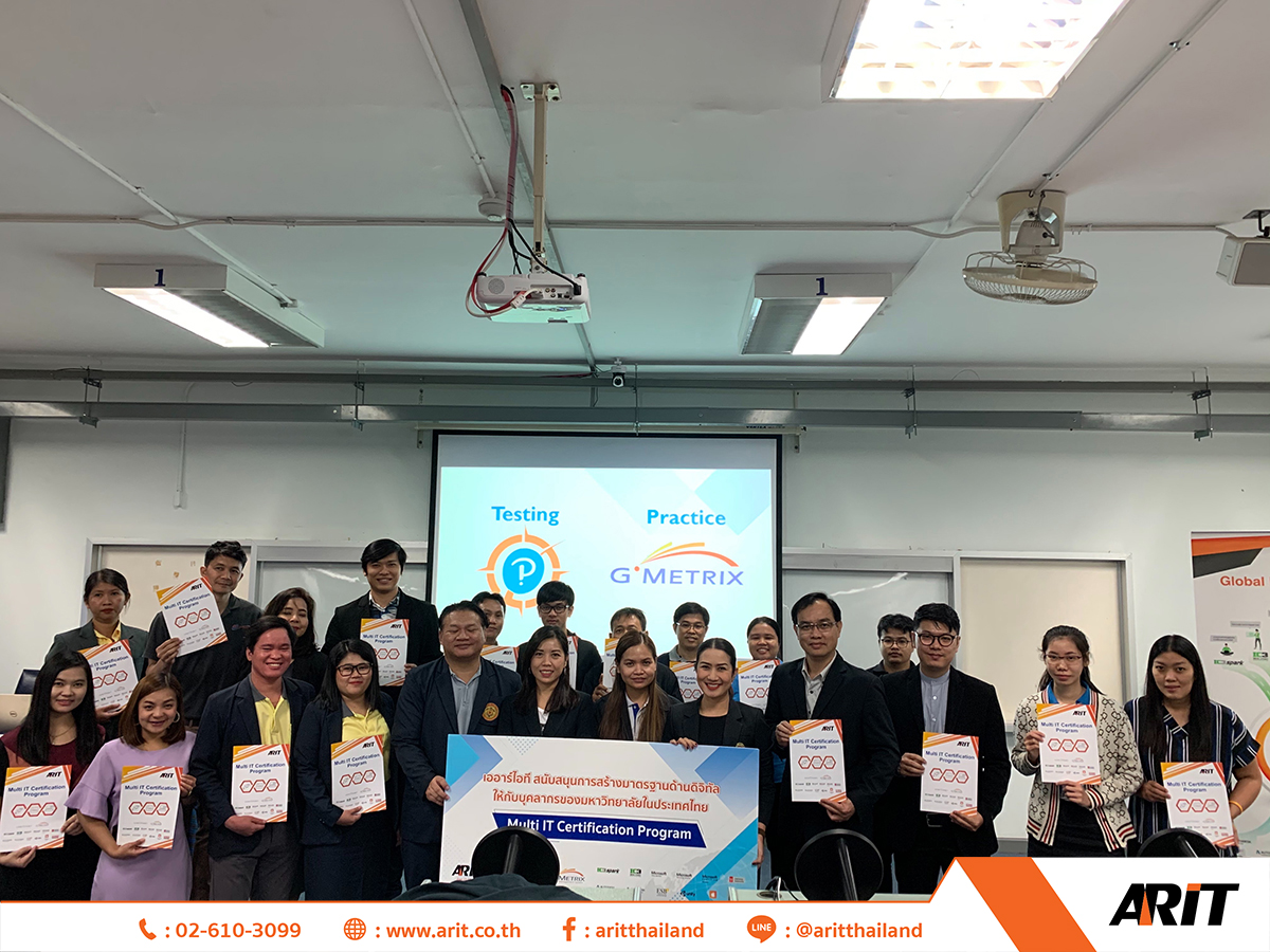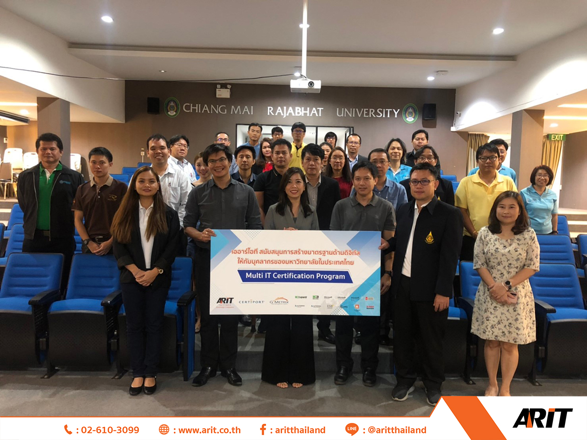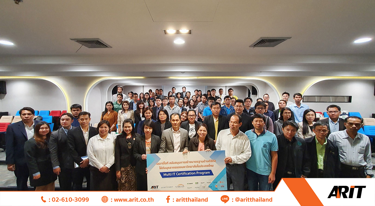 ARIT ร่วมสนับสนุนการสร้างมาตรฐานด้านดิจิทัล ให้กับบุคลากรของมหาวิทยาลัยในประเทศไทย ทั่วประเทศ ด้วย “Multi IT certification Program” มาตรฐานการรับรองที่ครอบคลุมทุกทักษะ การใช้งานในยุคดิจิทัล!!! เพื่อให้อาจารย์ บุคลากรทางการศึกษา ได้มีเครื่องมือในการเรียนรู้ และพัฒนาทักษะด้านดิจิทัล และได้รับการทดสอบด้วยข้อสอบมาตรฐานสากล ที่เหมาะสมและตรงตามทักษะวิชาชีพของตนเอง โดยจัดขึ้นที่แรกในจังหวัดกรุงเทพมหานคร ณ บริษัทเออาร์ไอที จำกัด เมื่อวันที่ 9 ตุลาคม 2562