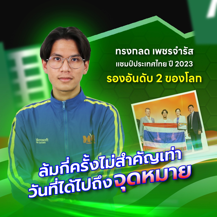 ผลลัพธ์จากความพยายามและไม่ถอดใจ ส่งให้แทนก้าวสู่ตำแหน่งผู้ชนะโปรแกรม Excel บนเวทีประเทศไทยในที่สุด และกลายเป็น รองอันดับ 2 ของโลก บนเวที MOS World Championship 2022